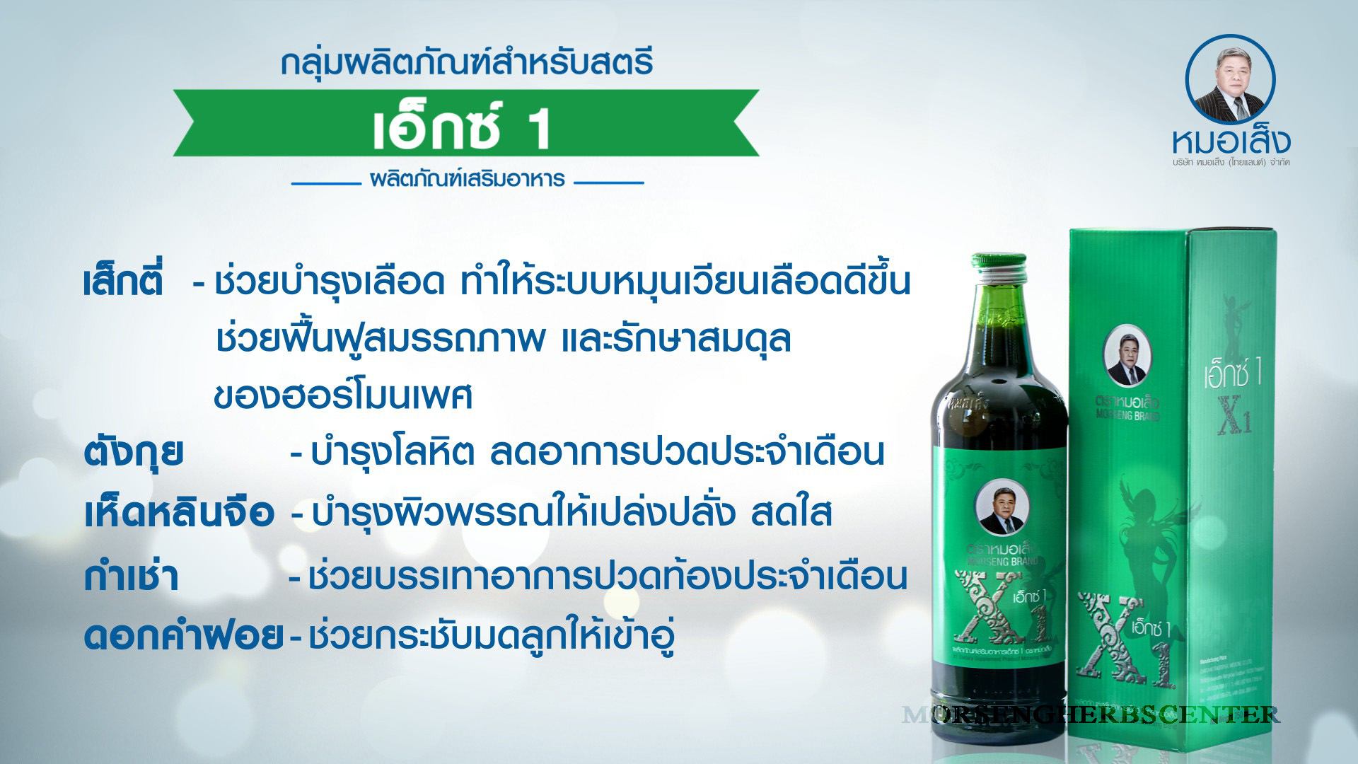 สรรพคุณ : ผลิตภัณฑ์เสริมอาหาร เอ็กซ์1หรือ ยาน้ำว่านชักมดลูกสูตร 1 ตราหมอเส็ง