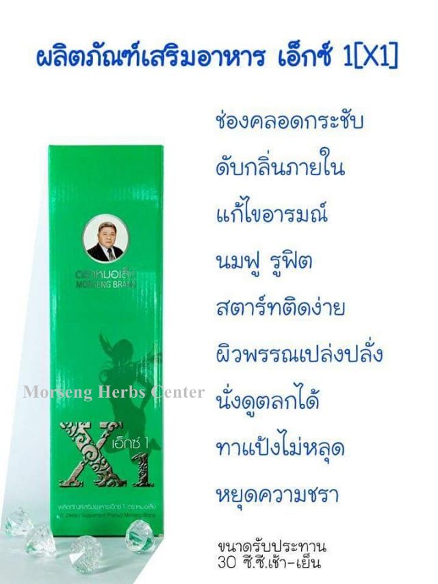 ผลิตภัณฑ์เสริมอาหาร เอ็กซ์ 1 หรือ ยาน้ำว่านชักมดลูกสูตร 1 ตราหมอเส็ง (ชนิดน้ำ) ขนาด 750 มล.